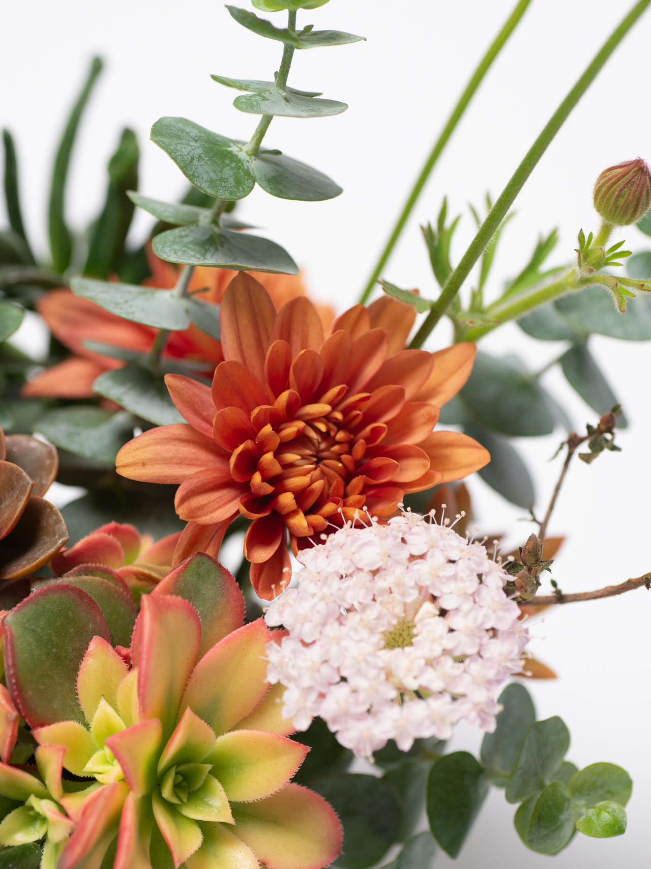 鮮花觀賞期結束後,可將海綿與鮮花移除,再依需要將多肉改種入專用土、照多肉方式養護。